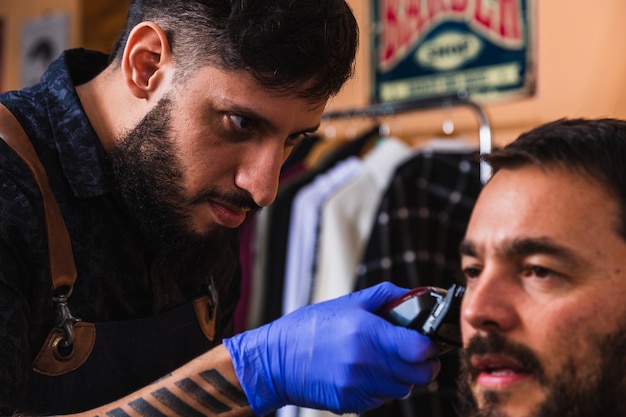 ¡Renueva tu estilo con nuestro exclusivo servicio de corte de barba! En nuestra barbería, transformamos tu look con técnicas de precisión, productos premium y atención personalizada. Ya sea que busques un diseño moderno, un perfil clásico o simplemente un retoque impecable, nuestros barberos expertos están listos para realzar tu imagen.